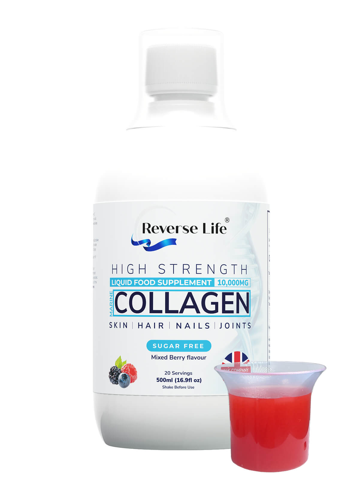 Water, hydrolysed collagen(FISH), sweetener: xylitol, vitamin C (sodium ascorbate), acids: citric, malic and phosphoric, flavours, hyaluronic acid sodium, colour: lycopene from red tomatoes, zinc (zinc gluconate), preservatives: potassium sorbate, sodium benzoate, sweetener: sucralose, vitamin D (cholecalciferol), biotin (D-biotin)