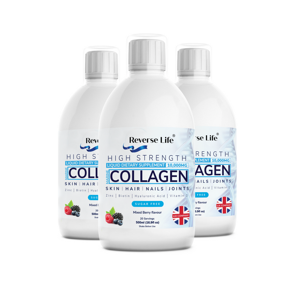 Collagen combined with Hyaluronic acid and Biotin (as it is in the Reverse Life formula) can also help peri and menopausal women combat a range of common issues including joint pain, loss of skin hydration, dryness and itching as well as thinning hair and brittle nails.