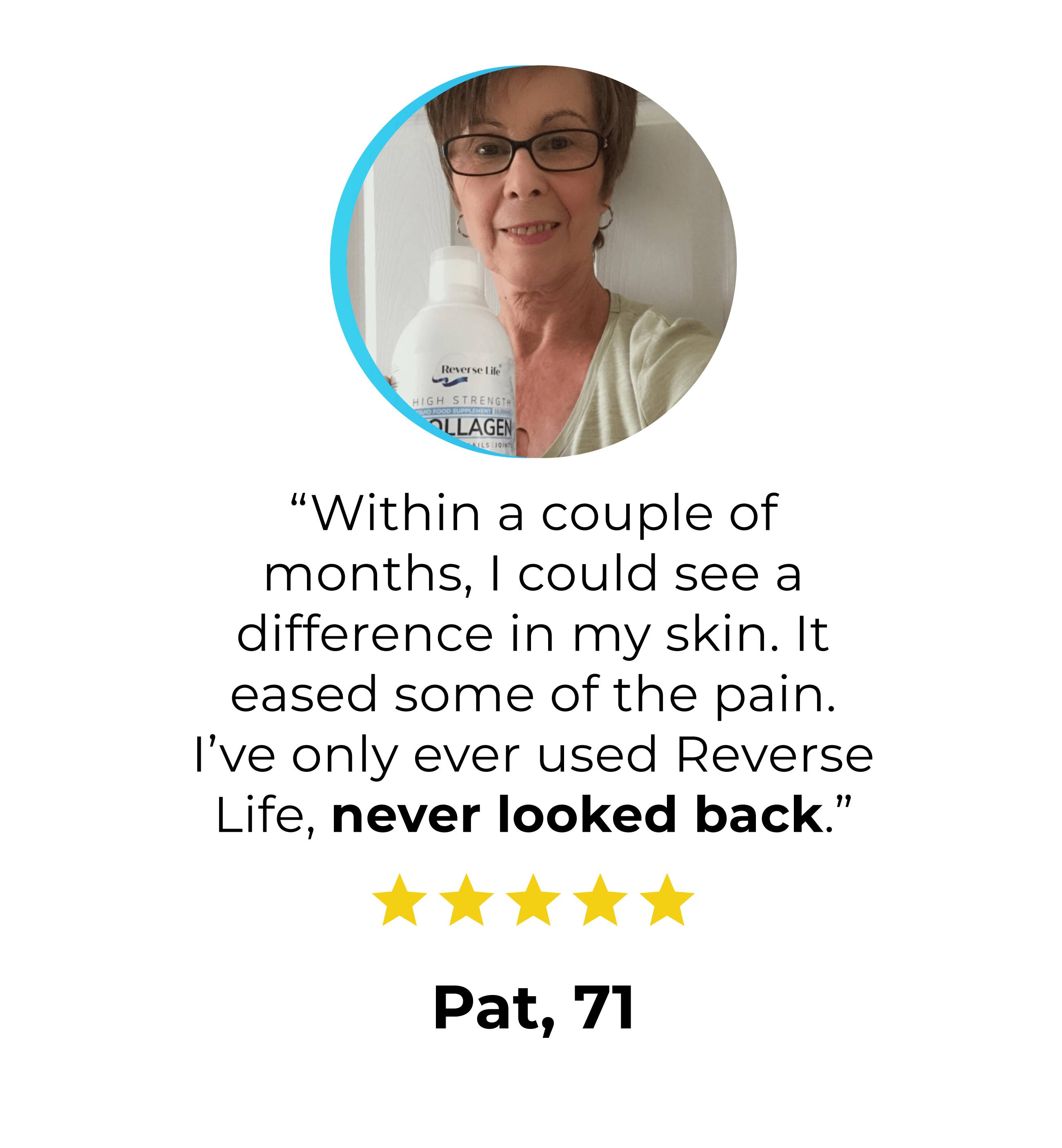 Reverse Life Collagen’s unique high-quality formulation may help with menopausal skin. Studies show that women’s skin can lose as much as 30% of its collagen during the first five years of menopause alone so taking a daily collagen supplement can help boost collagen levels.