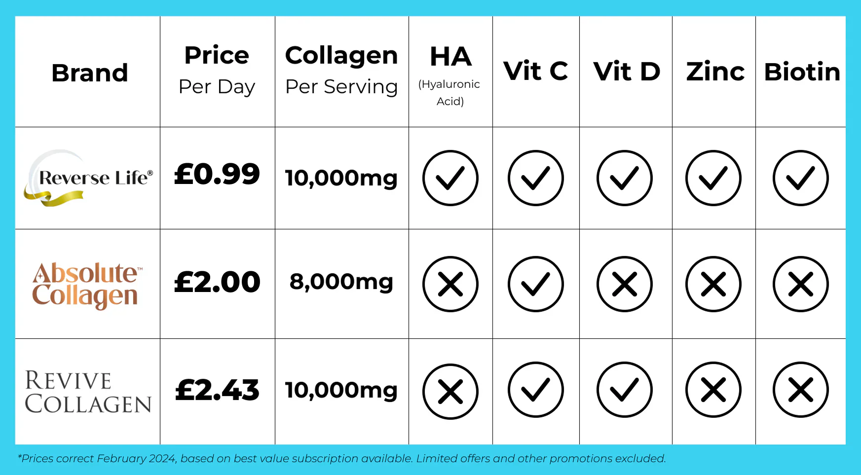 In an independent trial carried out with Cue Consumer, they assessed the overall efficacy of our Reverse Life collagen supplement. Positive benefits were experienced for skin, hair, nails and joints in just 20 days.