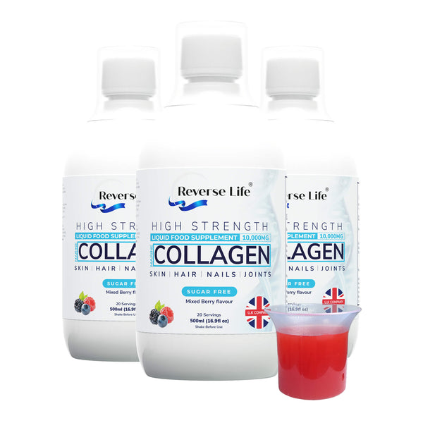 One 500ml bottle of Reverse Life marine collagen contains a 20 day supply.